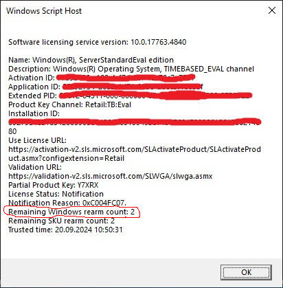 Eğer deneme lisansınızı uzatma hakkınız kalmışsa slmgr -rearm ile deneme lisansınızı 180 gün daha uzatabilirsiniz.